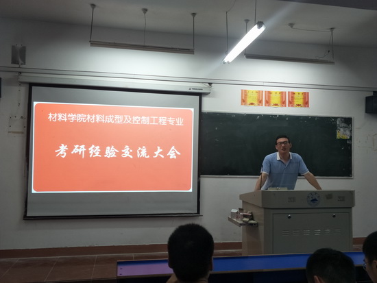 在材料成型及控制工程专业考研经验交流会上,副院长李世斌代表学院向全体考研上线同学表示热烈祝贺,向帮助同学们考研工作中付出艰辛的各个部门及个人表示感谢,并在考研专业的选择、考研良好心态的保持和专业课程的学习技巧上向同学们提出了有效的建议。