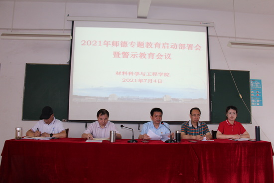按照学校和学院有关工作要求,为进一步加强新时代教师队伍建设,营造良好的师德师风建设氛围,7月4日下午,yl6809永利YL集团在材料实验楼406会议室召开2021年师德专题教育学习暨警示教育会议,全体教职工参加了会议,会议由党委书记袁传发主持。