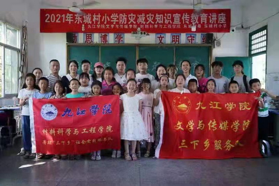 6月23日下午,材料学院三下乡服务队与文传学院暑期三下乡社会实践服务队赴九江市濂溪区莲花镇东城小学开展以防震减灾防溺水为主题的知识宣讲教育讲座。
