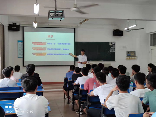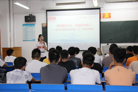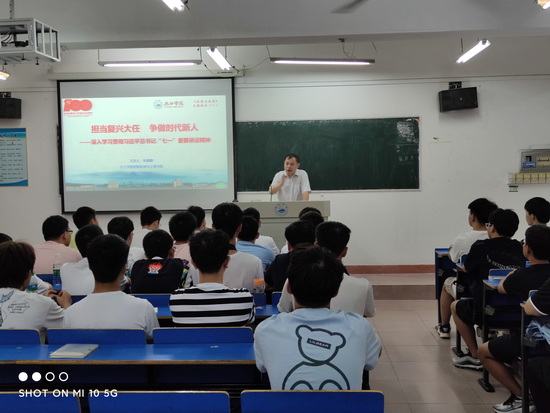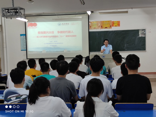 思想政治理论课是对大学生进行思想政治教育的主渠道,是落实立德树人根本任务的关键课程。根据学校党委统一安排,9月9日上午,yl6809永利YL集团长张德勤、党委书记袁传发、副院长李世斌、李养良,党委副书记陈娜为学院2021级新生上了第一堂思政课,主题为“担当复兴大任 争做时代新人——深入学习贯彻习近平总书记‘七一’重要讲话精神”。