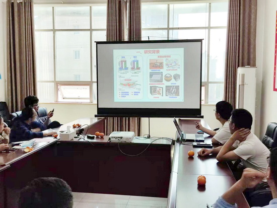许欢博士做了关于《放电等离子原位反应烧结制备TiCN-TiB2-Co金属陶瓷材料》的学术报告。在报告中,许博士汇报了博士期间的部分研究工作以及来校之后主要研究方向,重点介绍了金属基陶瓷刀具材料的研究进展及不足,并就其近期开展的研究工作与在座博士进行了交流讨论。