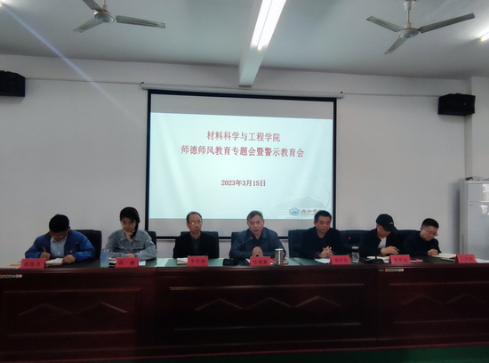 3月15日下午,学院党委在材料实验楼306会议室召开师德师风专题会暨警示教育大会。会议由学院党委书记袁传发主持,学院全体教职工参加会议。