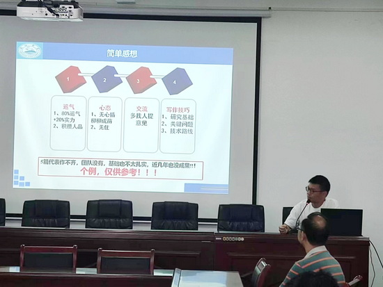 会上,许欢博士和马世方博士就获批2023年国家自然科学基金,结合自己的做法分别谈了自己的感想,分享了申报国家基金的做法。他们认为,课题申报成功,这是一个偶然,但又是一个必然,偶然的是申报的课题能够获批,必然的是在课题申报上作了充分的准备,机会总是给予有准备的人的;要获批课题,首先要有勇于申报、敢于尝试、不怕不畏的精神,其次要有好的心态,做到成功可喜、失败不馁,第三要选准角度,课题要有新意,并掌握一定的写作技巧。两位博士还就课题的思路来源、申请书的撰写、申请书投递方向、课题修改和申报过程等情况作了交流,并总结了自己在申报课题过程中的不足和教训,建议加强科研团队建设,为我院教师今后申报课题提供了一定的借鉴参考。