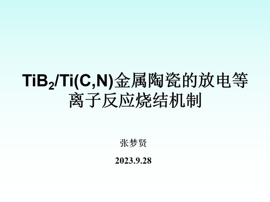 张梦贤博士做了《TiB2/Ti(C,N)金属陶瓷的放电等离子反应烧结机制》的报告。张博士利用DSC分析了金属陶瓷的形成过程,利用不同温度的烧结实验分析了TiB2/Ti(C,N)金属陶瓷在烧结过程中的物相组成、组织结构以及气孔状态的演变规律,探索了不同碳化物添加剂对金属陶瓷组织结构以及力学性能的影响规律。报告之后,参会人员对如何进行基础研究、金属陶瓷的相成分、金属陶瓷的界面调控方式、以及文章发表等内容进行了讨论交流。