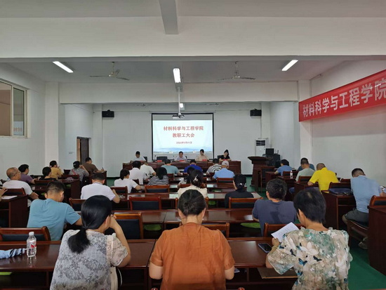 2024年8月31日下午,yl6809永利YL集团在材料实验楼306会议室召开全院教职工大会,部署新学期学院各项工作。会议由党委书记陈娜主持,院长张德勤、省材料表面再制造工程技术研究中心主任王洪涛、副院长姚海龙、副书记熊焘和全院教职工参加会议。