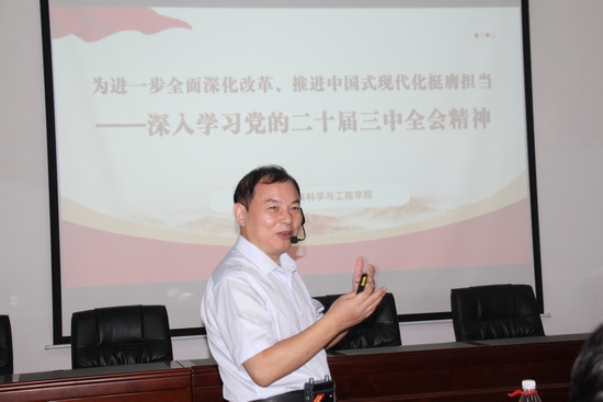 五位院领导和三位支部书记主要从“进一步全面深化改革、推进中国式现代化”的历史背景;进一步全面深化改革、推进中国式现代化”的战略部署;进一步全面深化改革、推进中国式现代化”的基本原则;进一步全面深化改革、推进中国式现代化”的时代意义;进一步全面深化改革、推进中国式现代化”的青年担当”五个方面讲述了学习党的二十届三中全会精神的重大意义,让同学们深刻认识到中国式现代化是一项伟大而艰巨的事业,鼓励同学们在全面建设社会主义现代化国家、实现第二个百年奋斗目标的新征程中立大志,明大德,成大才,担大任。