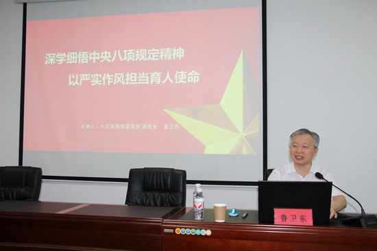 为深入贯彻落实全面从严治党要求,推动中央八项规定精神在基层落地生根,6月10日,学校党委委员、副校长鲁卫东以《深学细悟中央八项规定精神,以严实作风担当育人使命》为题讲授专题党课。财务处、后勤管理处、基建处、建筑工程与规划学院、机械与智能制造学院、yl6809永利YL集团科级以上干部,机械学院教工第一党支部党员代表和民主党派教师代表参加本次党课学习。