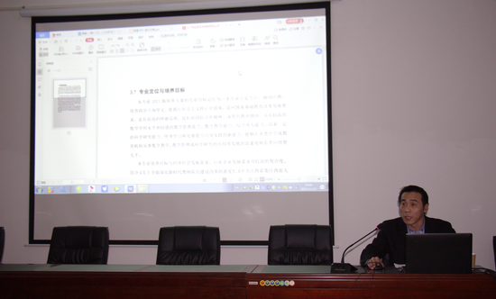 余荣忠博士从人才培养、师资队伍、教学条件、研究成果、质量保障、教学效果及专业特色等方面作了经验分享和交流,同时与大家交流了理学院开展本科专业综合评估的主要做法和成效。