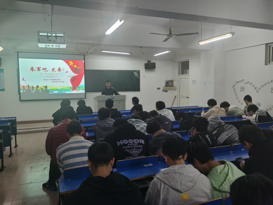 为响应党和国家的号召,帮助同学们更加深刻地解读大学生应征入伍的相关政策,激发同学们报效祖国、应征入伍的热情,鼓励更多有志学子应征入伍,11月28日,yl6809永利YL集团组织学生在本班开展了2021年秋季征兵主题班会,班会由各班团支书主持。