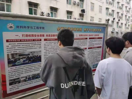 为进一步扩大宣传力度,提升宣传效果,材料学院在学生宿舍25栋门口继续进行安全教育宣传活动。