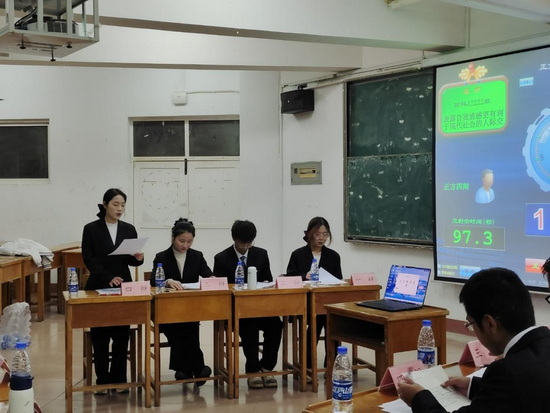 大一六个班级积极参与此项活动,每个班级各组织了一支队伍,经过六场激烈的角逐赛,A2222班和A2232班通过他们的不断努力和团队合作精神,从中脱颖而出,进入决赛。2022年12月3日晚,材料学院辩论决赛于竞知楼阶梯教室五举行,由材料A2222班辩手组成的正方和材料A2232班组成的反方,对“表露自我感情/隐藏自我感觉”这个辩题展开激烈辩论。此次辩论赛评委组由材料学院学生会主席向远刚、材料学院刘伟东、建工学院郭小瑄、机械学院刘豪、外国语学院万欣宇等同学组成。本次比赛引起我院学生广泛关注,同学们纷纷前往现场观看,为自己心仪的队伍加油。