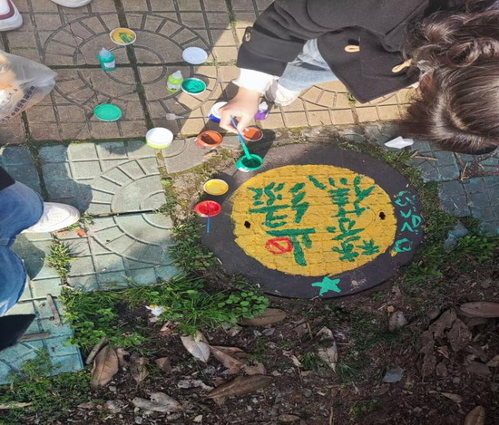 活动中,志愿者们被分成五个小组,前往各自的地点,在学校井盖上绘上有关垃圾分类主题的图画。天气是阳光明媚,同学们的脸上洋溢着快乐的笑容,大家以井盖为画布,手持画笔与调色盘,一笔一笔认真勾画,积极参与美术创作,增添了校园的美丽,也提高了对美的感知能力。活动结束之后,同学们不忘记把场地收拾干净,留下井盖上的一幅幅生动的图案。