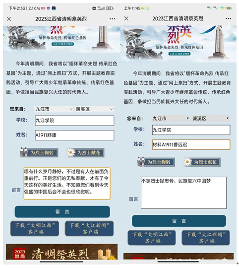然后,主持人组织大家共同参与“清明节网上祭英烈”活动,向英烈献花并用心写下留言、寄语,以此来寄托自己对英雄烈士的无限哀思和无比崇敬。