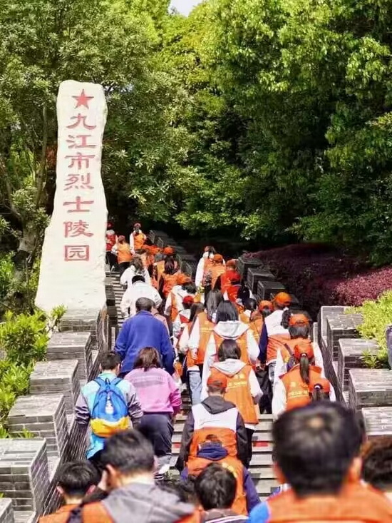 活动开始前,所有成员于学校西门集合,共同步行到九江市烈士陵园。杏花零落清明雨,卷帘双燕来还去。大家怀着对革命先辈们深深的思念,在纪念碑前,青年志愿者们向烈士纪念碑敬献鲜花,并慷慨激昂地宣誓道:“青年志则国志,青年强则国强,青年雄于地球,则国雄于地球,我们就是祖国的希望”,伴随着这洪亮地声音,每个人心中的那个名为“民族精神”的火焰种子悄然萌发,相信它必将通过每一位同学的生命传播到每一个人心中。
