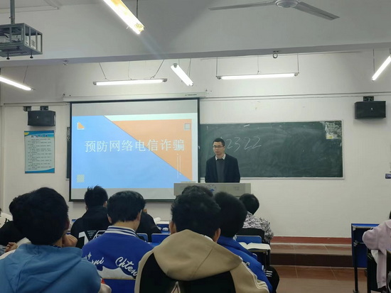 此次主题班会活动上,班长向同学们介绍什么是电信诈骗,电信诈骗是指通过电话、网络和短信方式,编辑虚假信息,设置骗局,对受害人实施远程、非接触式诈骗,诱使受害人打款或转账的犯罪行为。