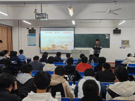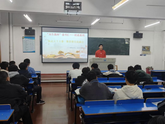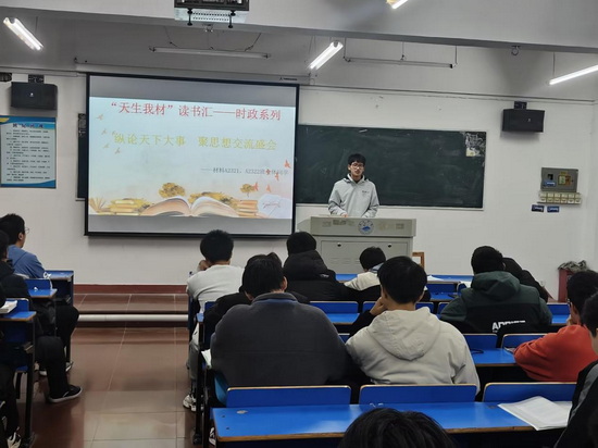 为把时事政治更好融入思政课堂,让学生了解党和国家重大方针政策,最新国内外形势、重点热点新闻等,提高全班学生的阅读理解能力,建设学习型的先进班集体,yl6809永利YL集团于2023年11月16日竞知楼212开展了主题为“纵论天下大势,聚思想交流盛会”的“天生我材”读书汇--时政系列主题活动。此次活动由A2321班班长黄陟凯、A2322班班长徐佳俊负责。