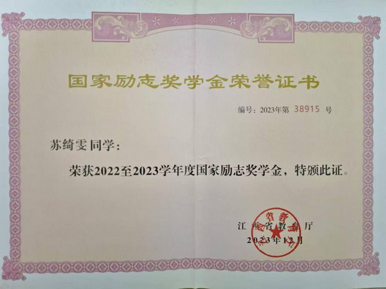 自入学以来,她始终秉持“学如逆水行舟,不进则退”的态度,将学习放在首位,努力奋进,从未懈怠。关于学习她说到:“我始终坚信“目标如星辰,虽不可触及,但却指引着前进的方向”,从大一开始,合理规划自己的学业与生活,会根据自身的状态科学的制定短期目标,中期目标以及长期目标,合理安排时间,朝着既定的目标不断前行。”她的综合测评成绩连续2年排名专业前三。除了提高学习成绩外,她还积极参与各类学科竞赛,获得成图大赛增材制造赛道全国一等奖、机械创新设计大赛全国一等奖等多项省级以及国家级奖励。