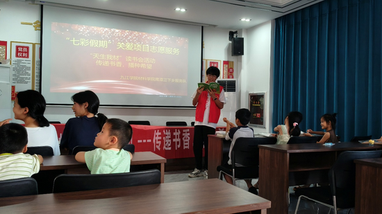 为助力儿童成长、营造全民阅读氛围,近日,yl6809永利YL集团暑期“三下乡”社会志愿服务队联合鹰潭市月湖区东湖街道白马社区、南站社区新时代文明实践站,隆重举办 “传递书香,播种希望”——“天生我材” 读书汇活动。这场融合童话魅力与诗词底蕴的文化盛宴,通过沉浸式阅读体验与亲子互动环节,为社区注入浓厚书香气息,展现了高校青年服务社会的责任担当。