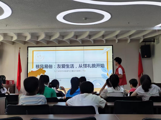 在南站社区新时代文明实践站,沈学艺以 “做个懂礼貌的好孩子” 为主题,通过 “小富与小善送礼物” 的对比故事,深入浅出地阐述 “心意重于物质” 的思想,并结合 “小熊送花” 的童话场景,引导孩子们理解 “尊重、关爱” 的礼仪本质。他还围绕 “互相尊重、男女平等、爱护长辈” 三大板块,以互动问答形式展开教学,“如何向爷爷奶奶表达关心”“男孩女孩如何互相学习” 等贴近生活的话题,引发了孩子们的热烈讨论。