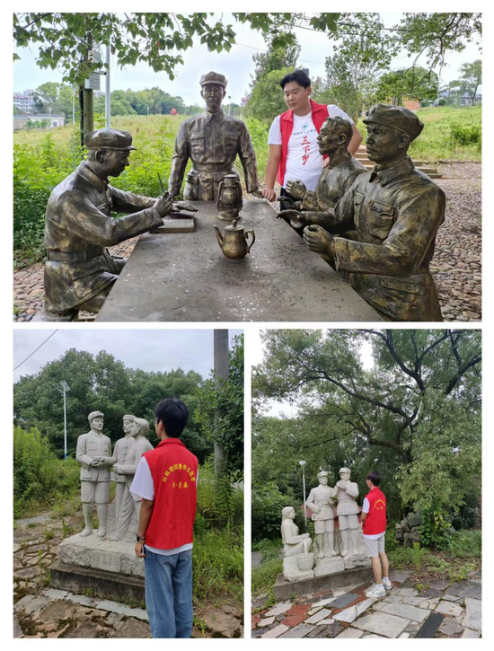 当队员们踏入红十军指挥部广场,一组气势磅礴的革命雕像瞬间映入眼帘。在阳光的映照下,雕塑表面明暗交织,持枪冲锋的战士们仿佛冲破了时空的束缚,重现英勇无畏的战斗姿态。队员们神情肃穆,不自觉挺直脊梁,放慢脚步,怀着敬畏之心缓缓靠近。微风轻拂,衣角飘动,却丝毫未减他们眼中的庄重。有人轻轻抚摸雕像,粗糙的纹理仿佛传递着先辈们浴血奋战时的炽热,耳边似乎也响起了激昂的战歌,历史的厚重感扑面而来。