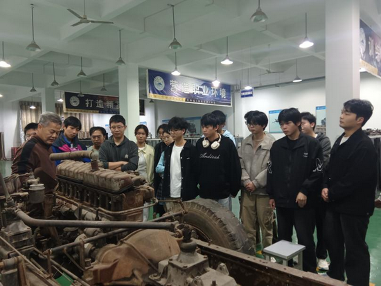 随后,乐海文老师带领同学们分别参观了卡车汽车发动机、电动车发动机的结构,详细介绍了发动机的工作原理。