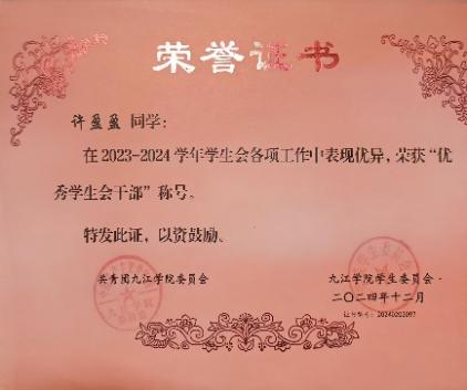 自踏入大学校园,许盈盈便以高标准锚定成长方向。作为班级学习委员、曾任材料学院学习部负责人的她,始终秉持认真负责的态度,高效完成老师交办的各项任务,积极搭建师生沟通的桥梁,用行动力赢得师生一致认可,先后斩获两次“优秀学生干部”、一次“优秀学生会干部” 荣誉称号。