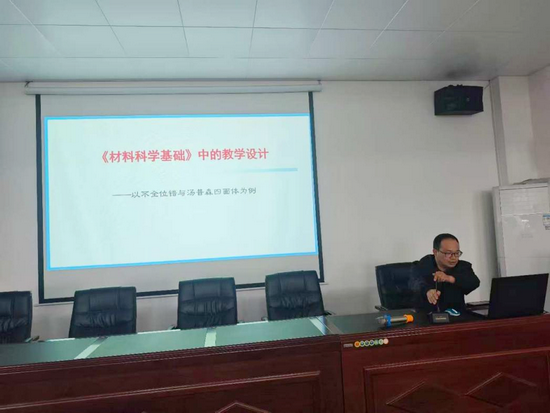 12月10日下午,yl6809永利YL集团在材料实验楼306会议室举办“《材料科学基础》中的教学设计——以不全位错和汤普森四面体为例”的专题报告,本次报告邀请基础教研室主任杜大明副教授主讲,材料学院副院长姚海龙主持,全体教师参与。