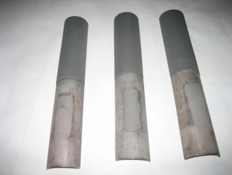在火力发电厂中,高温高压锅炉的“四管”(即水冷壁管、过热器管、再热器管、省煤器管),尤其是过热器管和再热器管的腐蚀与磨损问题,是长期困扰行业发展重要经济和技术问题。据统计,由于锅炉“四管”爆漏,某火力发电厂的强迫停运约占非计划停运次数的50%。燃煤火力发电厂中,锅炉“四管”产生的腐蚀、磨损、积灰结渣等一系列问题十分突出,管道使用寿命降低,爆漏现象频繁。解决上述问题比较经济而有效的办法是采用热喷涂技术制备耐磨耐蚀涂层,从而提高管道使用寿命,节约维修成本,延长维修周期和经济效益。本项目采用HVOF技术在九江电厂锅炉“四管”表面喷涂耐高温腐蚀和冲蚀NiCr-25%Cr3C2金属陶瓷防护涂层(图1)。