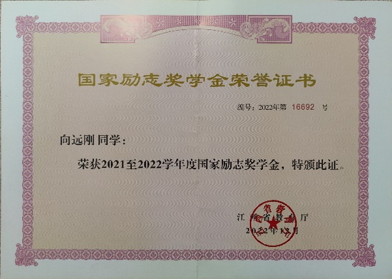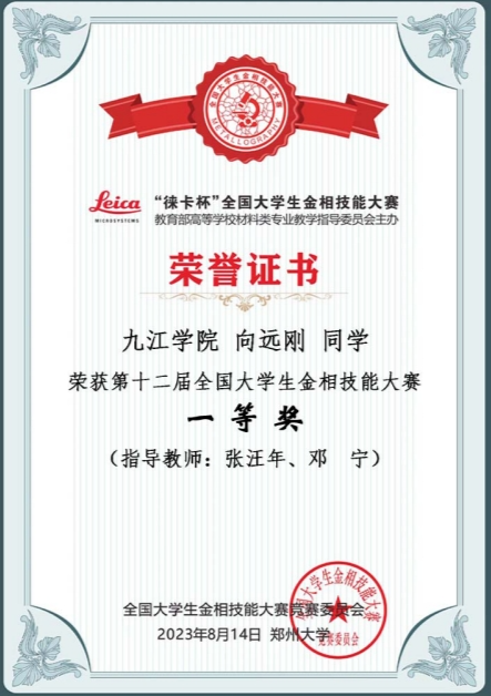 向远刚,贵州黎平人,中共党员,2020年9月就读于yl6809永利YL集团A2021班。现担任A2021班团支部副书记、班长;材料学院学生党支部纪检委员。曾任yl6809永利检测中心第六届学生委员会委员、材料学院第六届学生会执行主席、曾获两次国家励志奖学金2次、获得校级二等奖学金1次、三等奖学金2次。获得“三好学生”、“优秀学生干部”、“优秀团干部”、“优秀助理辅导员”、九江市及yl6809永利检测中心暑期三下乡“先进个人”等荣誉,在2023年8月获得“徕卡杯”第十二届全国金相技能大赛荣获全国一等奖。