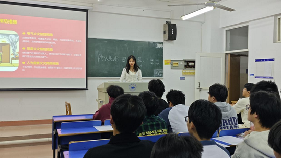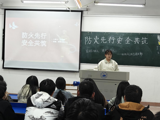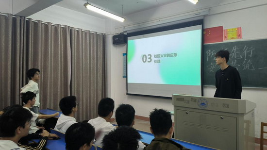 活动伊始,各班班长通过播放一系列触目惊心的火灾案例视频,让同学们深刻认识到火灾的危险性,随后进行防火知识讲解,从宿舍、楼道、公共场所等方面科普,重点强调火灾预防要点,还介绍了灭火器的使用方法及针对不同火灾类型应使用何种灭火器等内容,帮助同学们巩固消防安全基本理论知识,掌握在火灾中正确的自我保护方法。