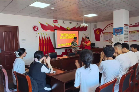 7月8号,社会实践服务队来到景德镇市珠山区御窑社区开展社区劳动教育实践。在当地社区工作人员的带领下,参与了社区开展的 “光荣在党50”纪念章颁发仪式暨党员老同志座谈会活动。座谈会上,一名党员老同志代表发表了热情洋溢的讲话,他带领我们回顾了在党的教育培养下,成长为一名在党50年共产党员的心路历程。随后,老党员们分别就各自入党后工作生活经历忆初心、谈感受,回顾艰辛历程、颂扬党的恩情。老党员们几十年在党的领导下的光辉历程仿佛就在昨日、历历在目,实践队成员们内心激荡、备受激励。