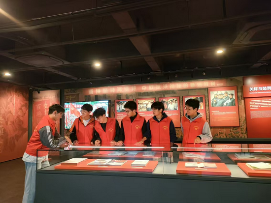同学们在实物展品前驻足良久,他们看到抗洪战士们用过的简陋工具,那是他们与洪水搏斗的武器,凝视那些被洪水冲击过的物件,似乎穿越时空,感受到了当年抗洪的紧张与危急,被抗洪战士们舍生忘死、众志成城的精神深深打动。