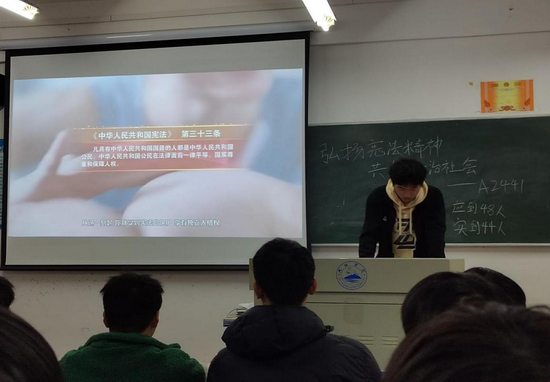 活动中,各班组织委员首先阐明宪法作为国家根本大法的至高地位,阐述了“治国安邦总章程”的深刻内涵。在讲解公民平等权时,通过分享就业歧视诉讼胜诉案例,向展现宪法如何为普通人撑起公平天空,打破不合理门槛;谈及受教育权,结合贫困地区学子借助教育资助政策改变命运故事,凸显宪法保障下知识改变人生路径通畅无阻。