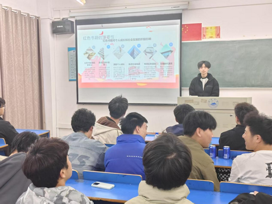 结尾的时候其中一位男同学总结道:“此次红色读书活动不仅是对过去的回顾,更是对未来的启示。我们要将红色基因融入到日常学习和生活中,成为激励自己不断前行的动力。在学习中遇到困难时,想想革命先辈们面对的艰难险阻,我们又有什么理由退缩呢?”