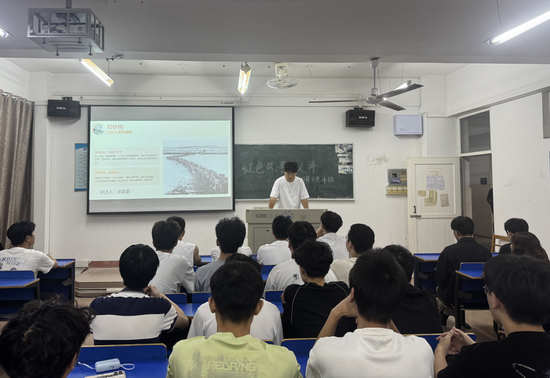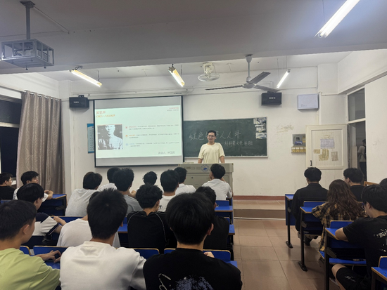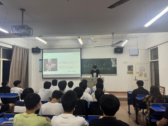 精神源泉。 班会现场氛围庄重而热烈,红色故事分享环节成为全场焦点。钟玉腾同学率先登台,带领大家走进抗日志士黄显生的英雄岁月。他讲到,“九一八”事变 爆发后,黄显生毅然放弃安稳生活,积极奔走联络爱国人士,牵头组建抗日武装力量,在敌后开展灵活的游击斗争。期间,黄显生不仅凭借智慧多次巧妙躲避日军搜捕,更曾带领队伍主动突袭敌人据点,有力打击了日军嚣张气焰。一个个鲜活的细节,让黄显生的英雄形象愈发清晰立体,深深印在同学们
