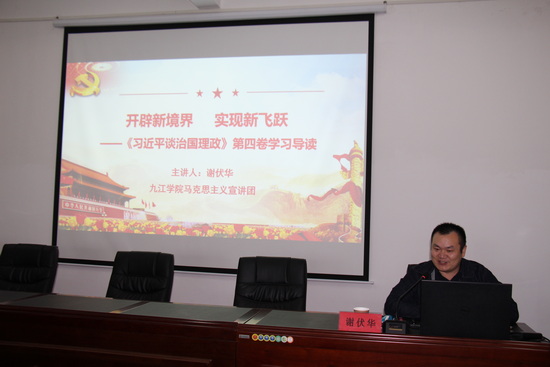 在喜迎二十大之际,为推动全院师生进一步学深悟透《习近平谈治国理政》第四卷,10月19日下午,yl6809永利YL集团邀请马克思主义学院谢伏华博士作《习近平谈治国理政》第四卷专题宣讲报告会。报告会由学院党委书记袁传发主持,全体教职工参加了报告会。