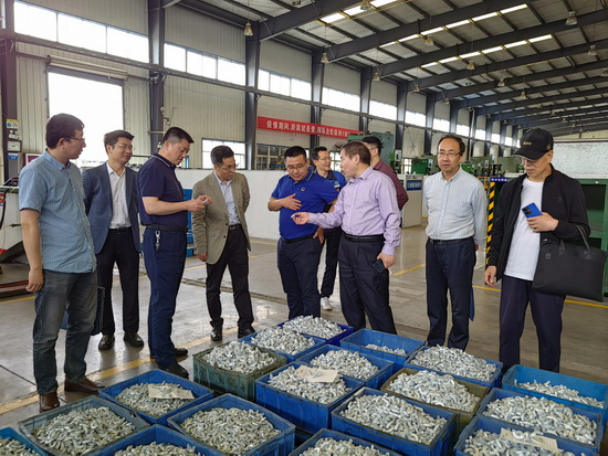在洋泰金属制品有限公司,曾晓峰总经理和刘顺芳副总经理带领参观了空调压缩机罐体的制备过程,介绍了产线自动化改造升级情况和取得的成效,并就目前企业生产过程中存在的问题进行了交流。